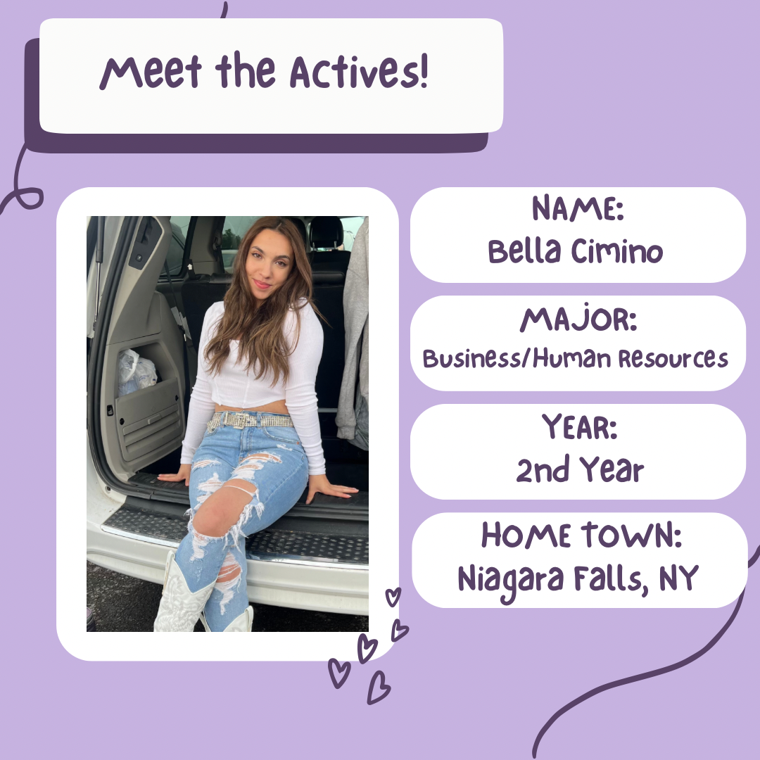 During the Spring 2023 and Fall 2023 I held the position of Social Media and Recruitment chair a long with a few other members of my sorority. I was involved with creating graphics and posts for the social media page and got to work on several projects for the page. Ranging from instagram posts to tik toks to reels, I got to make posts for several different platforms for many purposes. Keeping up with trends and informing the public about what we were doing as a sorority were important part as well as recruiting new members to join and encouraging them to get involved on campus.